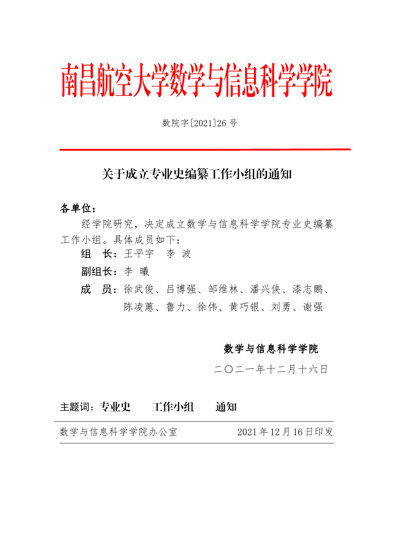 关于成立专业史编纂工作小组的通知