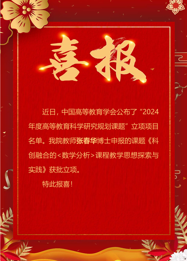 喜报!学院获批一项2024年度高等教育科学研究规划课题